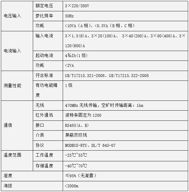 技術要求:3×1.5(6)A、3×20(100)A、 3×40(200)A、3×80(400)A、3×120(600)A