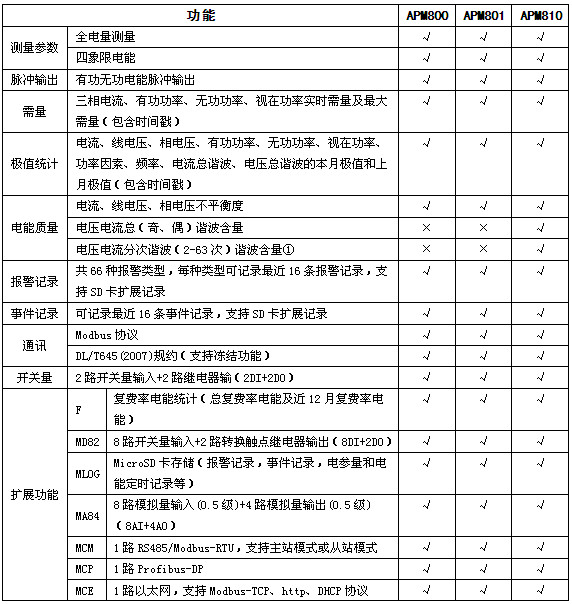 安科瑞電氣APM系列網(wǎng)絡(luò)電力儀表是按IEC標(biāo)準(zhǔn)設(shè)計(jì),與國(guó)際先進(jìn)技術(shù)同步的網(wǎng)絡(luò)電力儀表。具有全電量測(cè)量,電能統(tǒng)計(jì),電能質(zhì)量分析及網(wǎng)絡(luò)通訊等功能,主要用于對(duì)電網(wǎng)供電質(zhì)量的綜合監(jiān)控。該系列儀表采用了模塊化設(shè)計(jì),配合功能豐富的外部DI/DO模塊、AI/AO模塊、Micro SD卡(TF 卡)事件記錄(SOE)模塊、網(wǎng)絡(luò)通訊模塊、溫濕度測(cè)溫模塊,可以靈活實(shí)現(xiàn)電氣回路全電量測(cè)量及開關(guān)狀態(tài)監(jiān)控,雙RS485和以太網(wǎng)接口配合可實(shí)現(xiàn)RS485主站數(shù)據(jù)抄送,省去數(shù)據(jù)交換機(jī)。PROFIBUS-DP接口可以實(shí)現(xiàn)高速數(shù)據(jù)傳輸及組網(wǎng)功能。