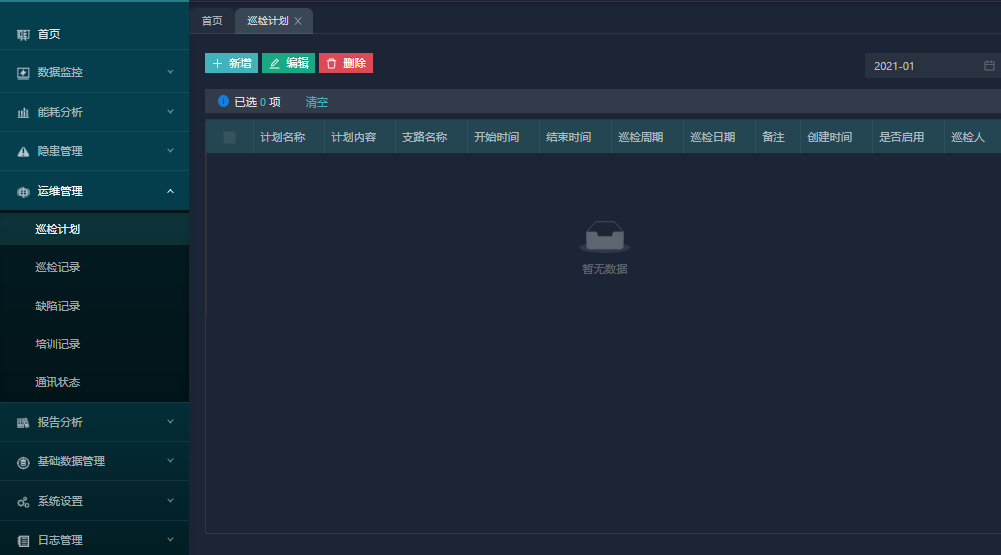 點擊“設備”后進入設備實時數據頁面。可查看歷史曲線,巡檢記錄,報警信息,控制日志和、視頻監控。