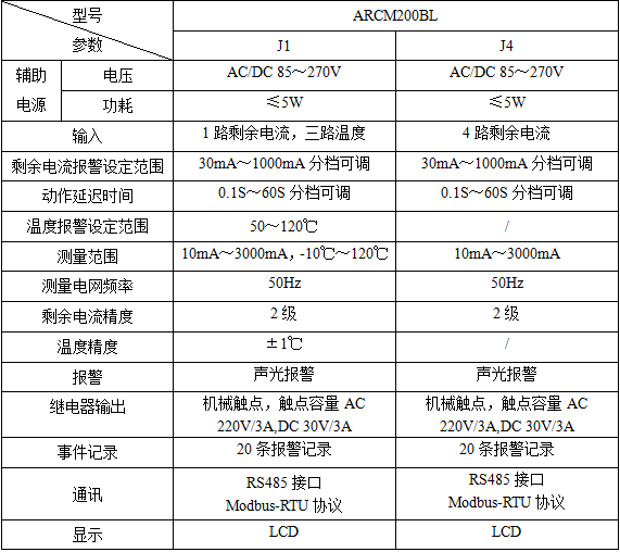 • ARCM200BL剩余電流式電氣火災監控探測器有兩種規格ARCM200BL-J1和ARCM200BL-J4,分別可以測量一路漏電、四路漏電,